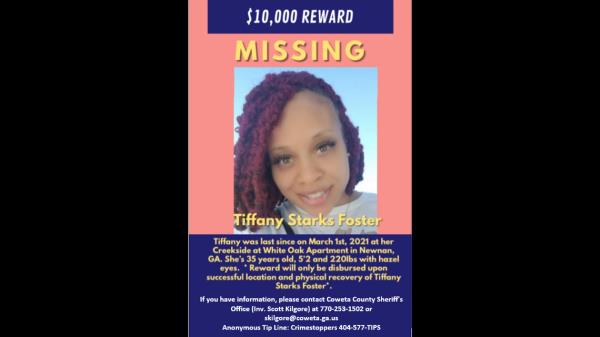 福斯特,也被称为蒂芙尼·斯塔克斯,最后一次被看到是离开她在纽南的公寓,纽南位于亚特兰大西南约40英里处。在2021年3月的新闻发布会上,她的妹妹金伯利·布莱恩(Kimberly Bryan)呼吁任何知道她失踪信息的人挺身而出。