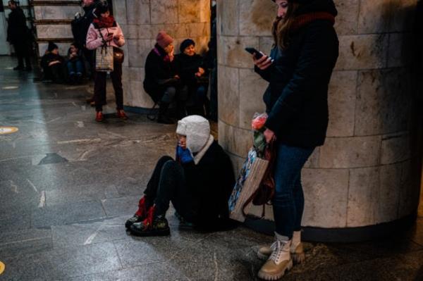 2022年12月16日,在俄罗斯入侵乌克兰期间,基辅市中心的空袭警报期间,平民在地铁站内躲避。- 2022年12月16日早些时候,俄罗斯对乌克兰各地城市进行了新一轮袭击,导致主要城市的水电中断,并在气温低于冰点的情况下对乌克兰电网造成压力。(图片来源:法新社Dimitar DILKOFF)