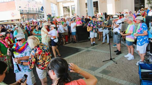 周日,数百人,也许是数千人,出现在莫比尔市中心,参加一场二线式的游行,纪念家乡的英雄吉米·巴菲特,这位创作型歌手去世一周多了。(图片来源:AL.com)